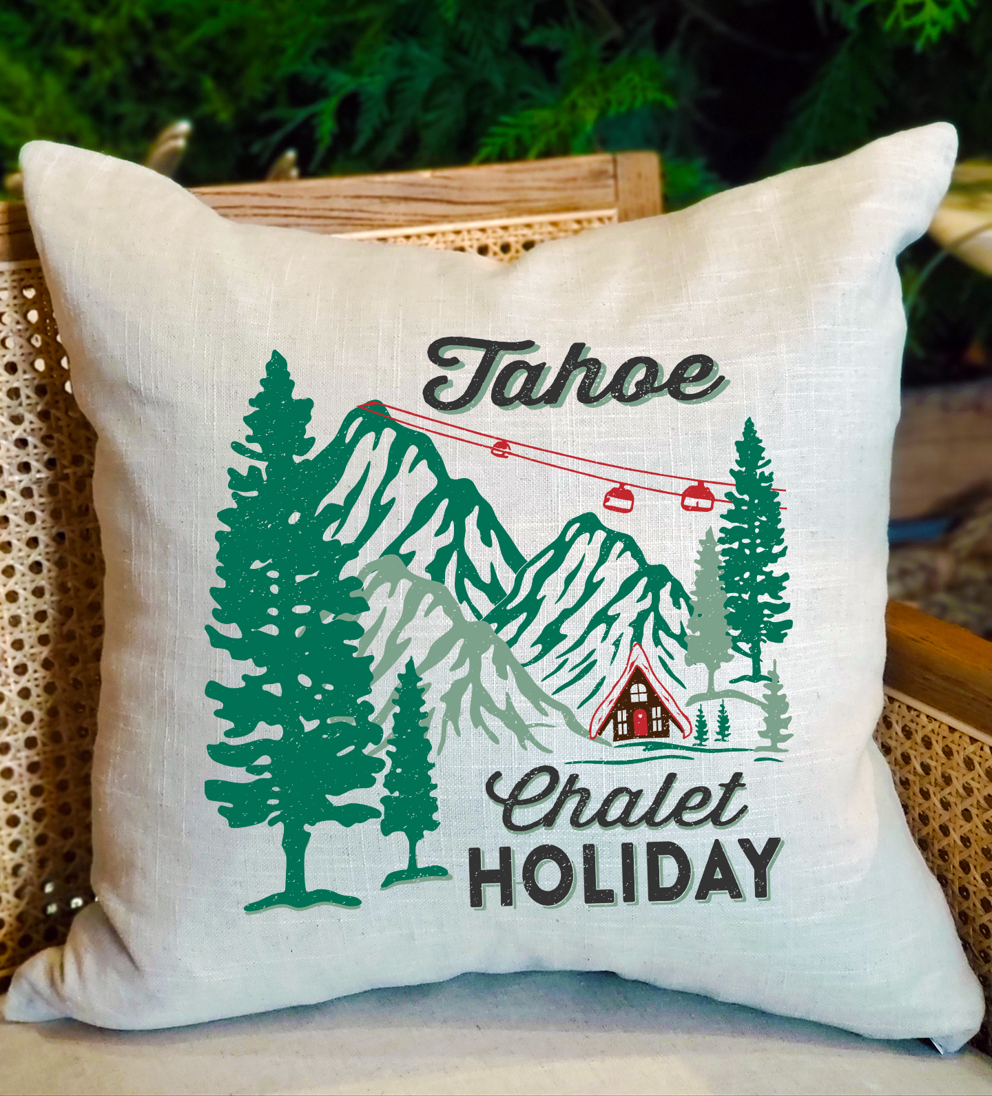 Bring that snuggly cabin feel to your holiday sofa. Add your name, neighborhood, or town!